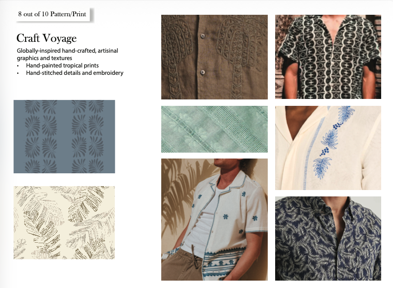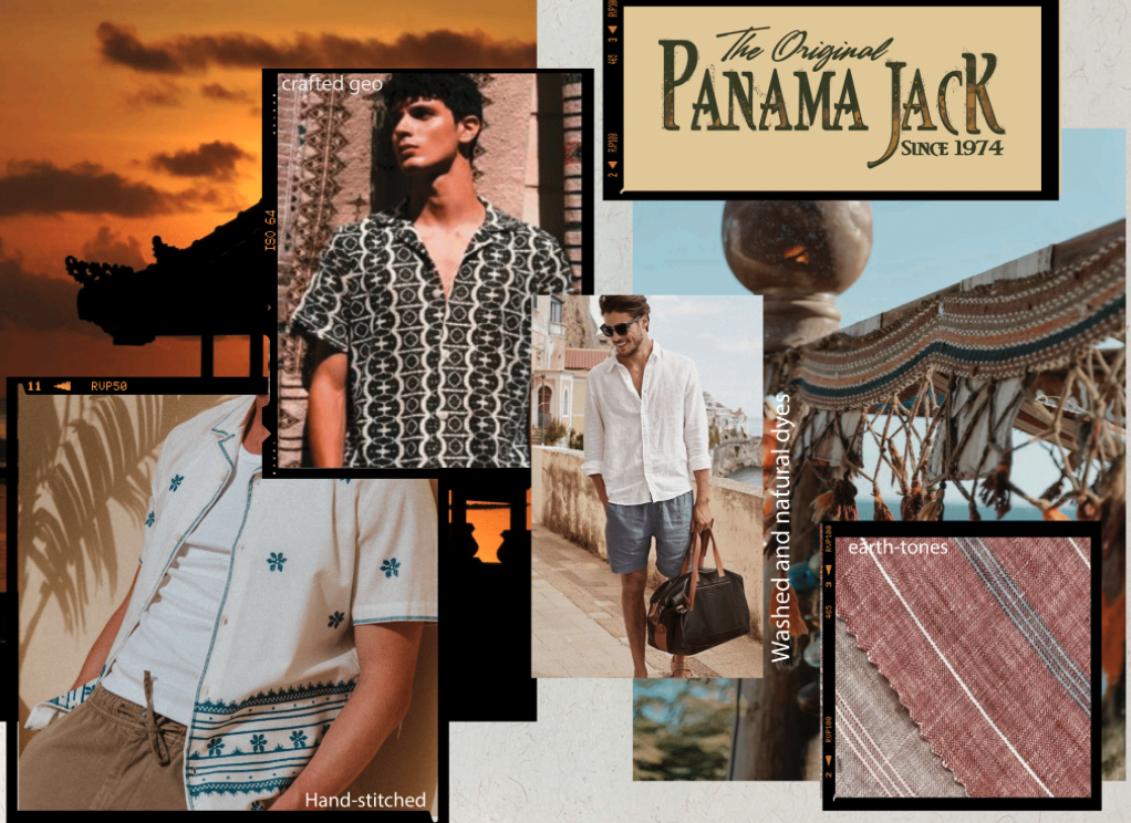 This brand identity positions Panama Jack as a purveyor of relaxed, global resort wear defined by a spirit of sophisticated travel. The aesthetic relies heavily on artisanal craftsmanship, showcasing intricate hand-stitched details and crafted geometric prints on light, breathable fabrics like linen. The color palette features a mix of warm earth tonesand crisp whites, evoking sun-drenched destinations and natural textures. Overall, the brand appeals to a well-traveled customer seeking comfortable, high-quality clothing that embodies an effortless, nomadic style.